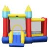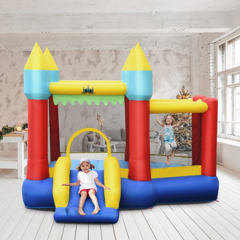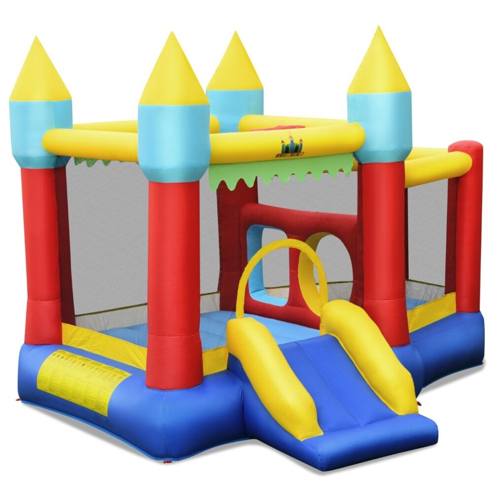 Give the perfect bouncer house gift to colour your kid's spare time. It features dual jumping areas, of which a large space can accommodate 2 kids at the same time and let them lie down, freely jump and laugh. Wide slide, crawl tunnel, 100 ocean balls and basketball bring much more enjoyment further. It is worth mentioning that the air pump is included which is intended to help inflate the basketball in minutes. The inflation of the bouncer is super easy as well, using a 480W blower. Safety matters a lot, and that's why it adopts ultra-thick 420D+840D oxford cloth. ASTM certification frees you from the worry about using reliability. By the way, ground stakes make exceptional stability come true while the carrying bag ensures convenient portability. Take this bouncer home and have an enjoyable time.