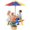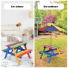 Removable Folding Umbrella Canopy: Designed with a removable folding umbrella, this picnic table can be set up outdoors to protect kids from rainy days or harmful ultra-violet. When removed the umbrella, you can use it indoors to provide kids with a spacious table.