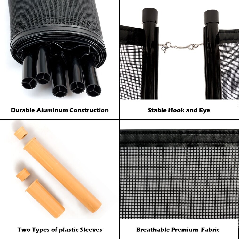 ● High Quality Fabric for Long-Lasting Use: This fence is made of premium mesh fabric. It is really good especially in summer. It is also extremely durable which will not crack easily and can be used for a long time. When not in use, the fence can be rolled up for easy storage and preservation.