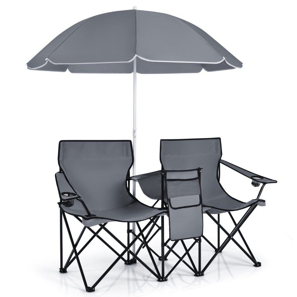 ● Foldable and Portable Camping Chairs: Both chairs and umbrella can be folded into compact sizes. After that, you put the folding picnic chairs and umbrella into the included bag for easy carrying and storage. Hence, this 2-seat portable outdoor chair with umbrella will be the perfect assistant for outdoor activities.