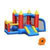 Kids can jump, slide and shoot in different playing area to explore ultimate fun. What you need to do is just use the bower to set up the playhouse in minutes and fix it with ground stakes. Then your kids can enjoy it freely. It is also designed with a soccer goal so that kids can play the soccer for endless sports fun. Safety is first, and the inflatable bounce house is no exception. Made of high quality oxford cloth and designed with mesh safety netting, it will provide safe using experience for kids. The carrying bag will solve your problem if you want to carry the bounce house outdoors. Meanwhile, castle design makes it more charming to kids, and creates a fond childhood memory for them. It is worth mentioning that there are 60 ocean balls, provided to let kids experience shooting fun by means of mesh holes, while 2 dart balls and dart target cheer up your kids further.