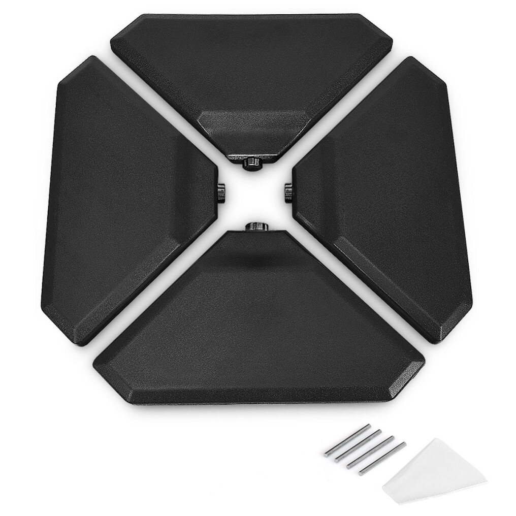 4 PCS Stable Base Weight: 4 premium triangle weight plates are designed as a cross base to fit in a cantilever patio umbrella. When filled with sand or water and placed in each slot, the plates are combined to form a stable square, providing a reliable weight of 70kg to stay firmly.