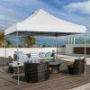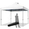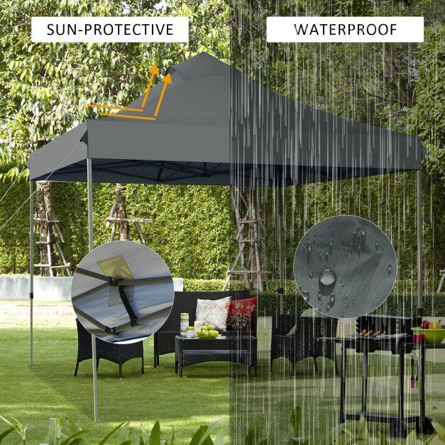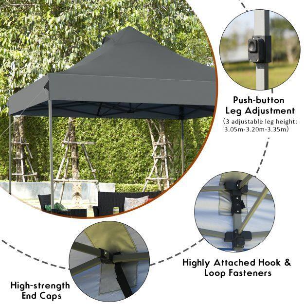 The canopy is made of 300D silver-coated oxford cloth, which can protect you from the sun and rain. The powder-coated steel frame is sturdy and not easy to rust to withstand long-term use. With a shade area of 100 square feet, this folding canopy is suitable for picnics, parties, trade shows and other outdoor activities. It's worth mentioning that this canopy has 3 height settings to choose from, and the no-pinch buttons allow you to easily lock the legs at the desired height without damaging fingers. In addition, equipped with a wheeled storage bag, this folding canopy can be carried to the beach, park, tailgate, etc.