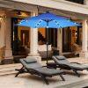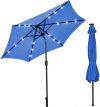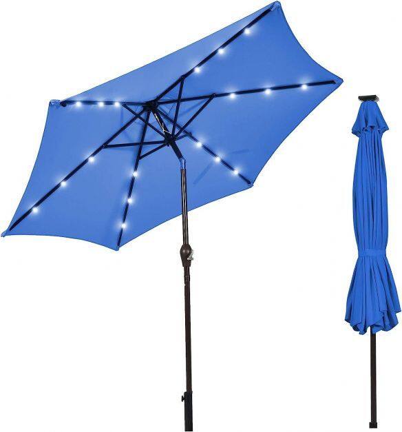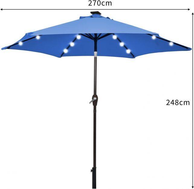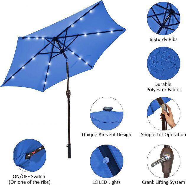 ● Bright Solar LED Lights: Equipped with 3 LED lights on each rib, this patio umbrella has a total of 18 built-in LED lights to help provide perfect lighting and romantic atmosphere at night. What's more, these lights are powered by solar panel on the canopy, which can save energy in a green and efficient way.