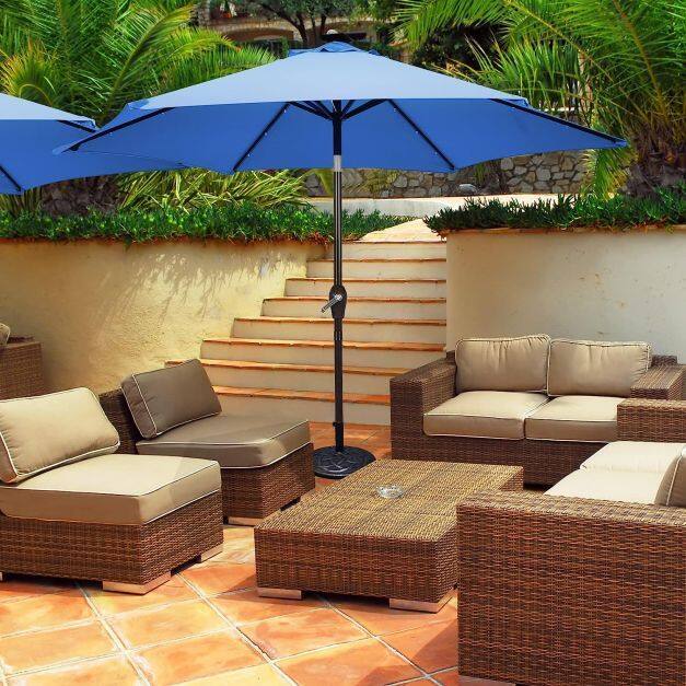 ● All-Day Shade Enjoyment: The 9ft diameter canopy creates a wider shade area than ordinary umbrellas on the market, which can shade your 42"- 54" round, square or rectangle table and 4 to 6 chairs. Moreover, with a convenient push-button tilt mechanism, the canopy angle can be easily adjusted to block the direct sunlight in all directions when the sun's position changes.