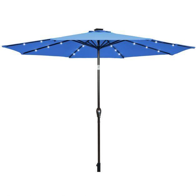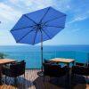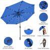 ● Bright Solar LED Lights: Equipped with 3 LED lights on each rib, this patio umbrella has a total of 24 built-in LED lights to help provide perfect lighting and romantic atmosphere at night. What's more, these lights are powered by solar panel on the canopy, which can save energy in a green and efficient way.