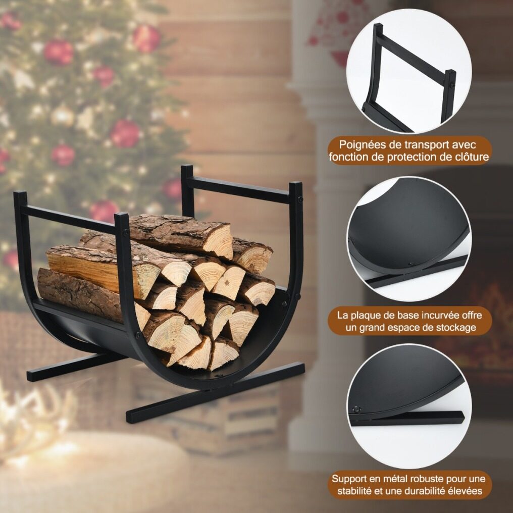 Made of high strength metal, this firewood rack ensures high load capacity of 66 lbs. Since its external coating surface, the rack can be used both indoors and outdoors for a long time. Specially designed U-shape appearance offers the rack ample storage space and high protective fence for firmly wood stacking. In addition, the fireplace rack measures 17”x14.5”x15.5”, a perfect size fits limited space to store firewood. What's more, this versatile wood rack is an eye-catching decoration to your backyard, living room, porch and kitchen for wood displaying and storing.