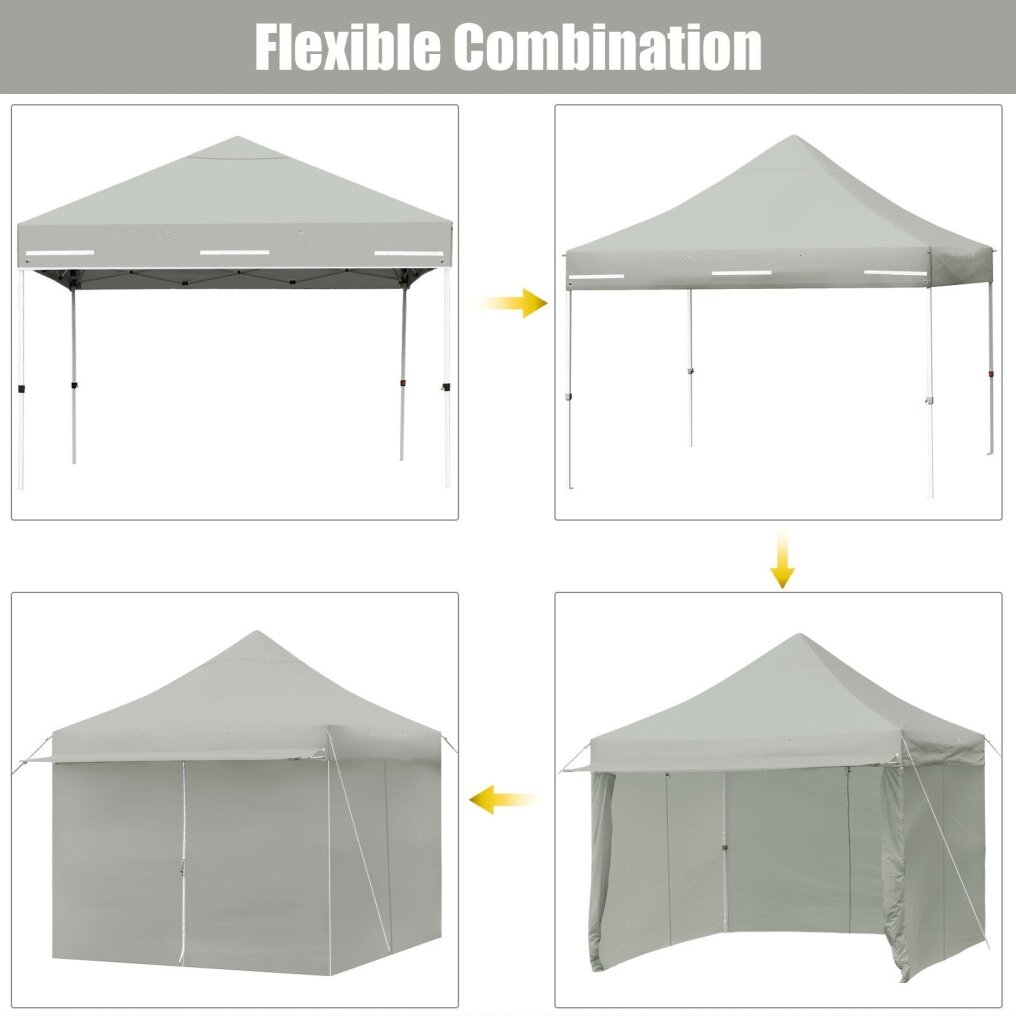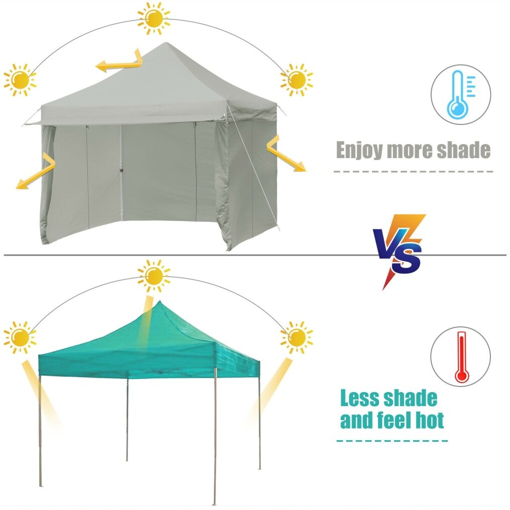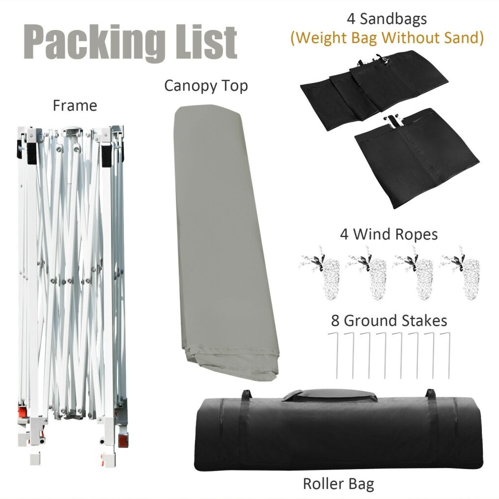 Powder coated framework makes this canopy stronger and oxford fabric is quite durable for long term use. 4 adjustable positions allow you to flexibly set the height of the canopy according to your needs or preference. With sandbags, ropes and stakes, the tent is more stable and easier to resist to the wind. And it also comes with a wheeled bag for easy transportation. The high-quality tent is perfect for many outdoor needs, such as concession stand, craft fairs, flea markets, etc. You can also use the tent for a backyard barbecue with your friends, or the patio tent is an ideal choice for your birthday party as well.