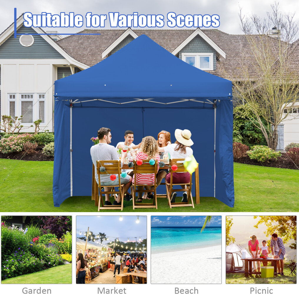 Powder coated framework makes this canopy stronger and oxford fabric is quite durable for long term use. 4 adjustable positions allow you to flexibly set the height of the canopy according to your needs or preference. With sandbags, ropes and stakes, the tent is more stable and easier to resist to the wind. And it also comes with a wheeled bag for easy transportation. The high-quality tent is perfect for many outdoor needs, such as concession stand, craft fairs, flea markets, etc. You can also use the tent for a backyard barbecue with your friends, or the patio tent is an ideal choice for your birthday party as well.