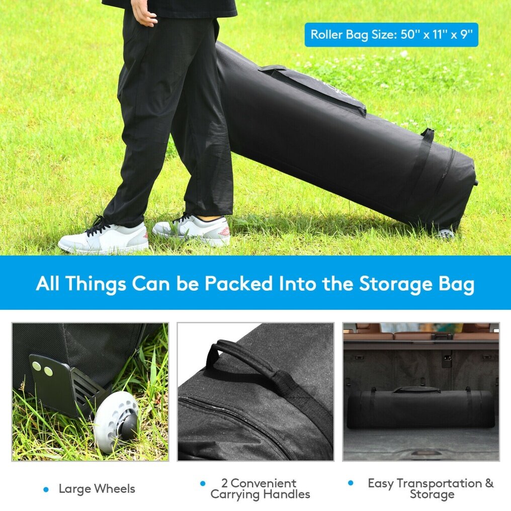 - Folding tent can be packed into a roller bag for storage and carrying