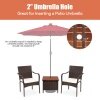 ● Reserved Umbrella Hole: There is a reserved umbrella hole on the tabletop. It's designed to hold umbrella poles with a diameter of up to 2 inches, thus fitting most umbrella sizes. By installing an umbrella, it will protect you and your table from sunlight, protecting you on hot summer days.