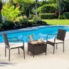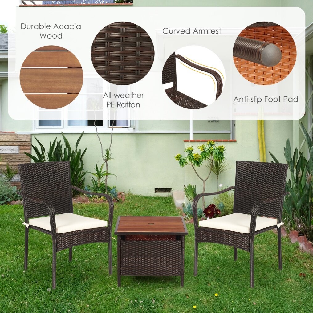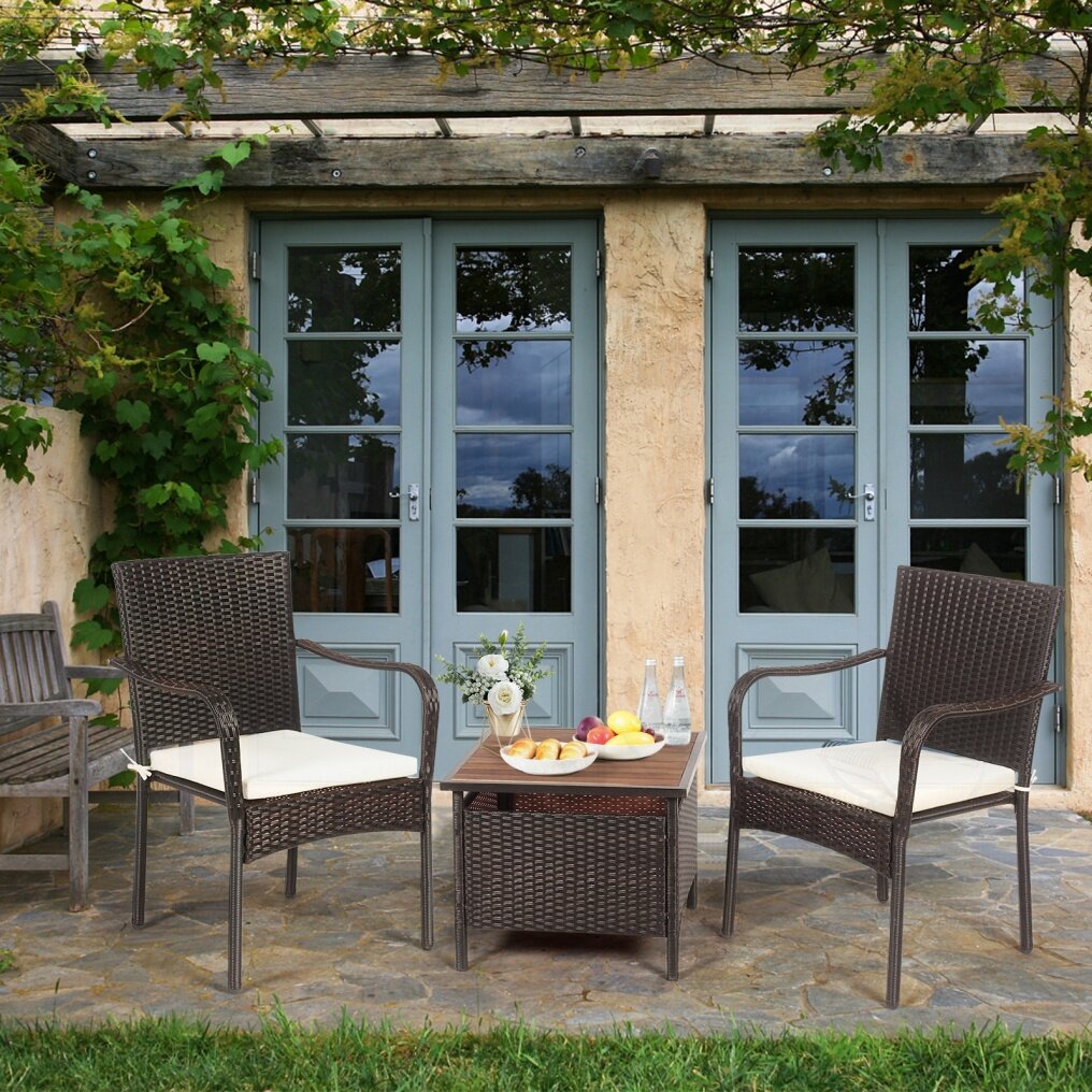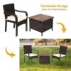● Selected Materials: Made of weather-resistant PE double-strand rattan, durable acacia wood and anti-rust steel frame, this 3 pieces outdoor patio furniture set stands the test of time and comes with strong loading capacity (350 lbs for each chair and 180 lbs for coffee table). Besides, the cushion cover with zipper can be removed for easy maintenance.