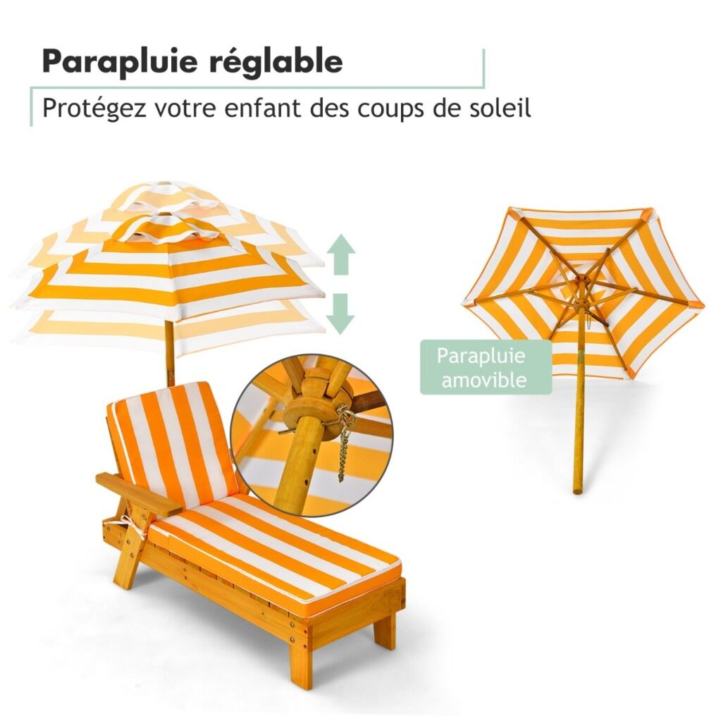 ● Removable and Height Adjustable Umbrella: Collocating this lounge chair with an umbrella, it will protect your children from sun burnt. The umbrella features 3 optional adjustable heights for your requirements, which is fixed by safety pin for stability. In addition, the removable umbrella can be used alone.
