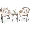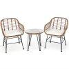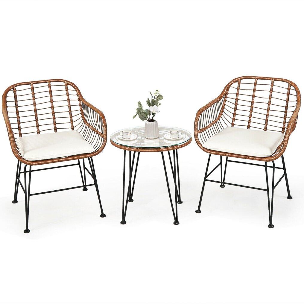 With a stylish and simple appearance, this patio bistro set will add a sense of elegance to your space. With compact size and lightweight design, this conversation wicker set is easy to move and suitable for hotels, offices, apartments and other places with limited space. The smooth surface is easy to clean and maintain. In addition, the premium rattan and durable iron frame ensure long-time service. The tempered glass tabletop can be used to place snakes, books and other daily necessities for easy access. This rattan furniture set with soft cushions allows you and your guests to sit together and enjoy the great outdoors.