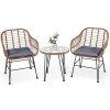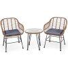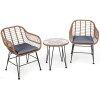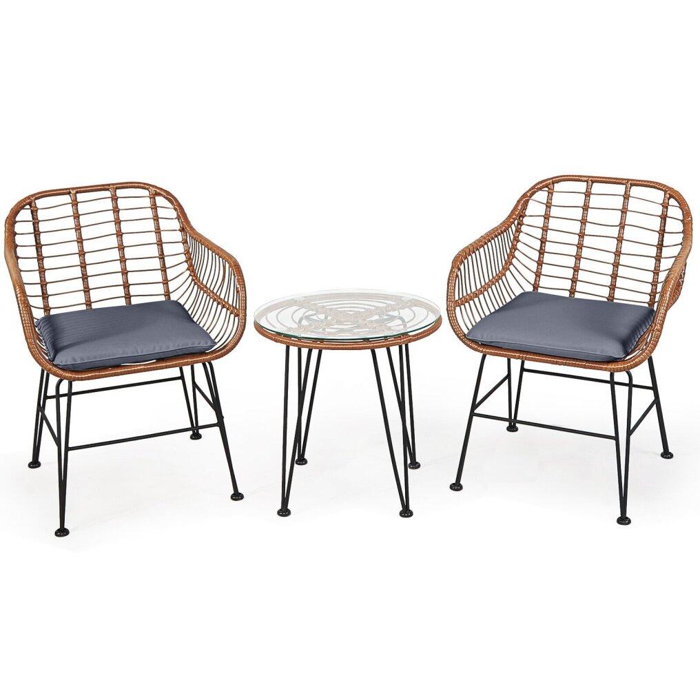 With a stylish and simple appearance, this patio bistro set will add a sense of elegance to your space. With compact size and lightweight design, this conversation wicker set is easy to move and suitable for hotels, offices, apartments and other places with limited space. The smooth surface is easy to clean and maintain. In addition, the premium rattan and durable iron frame ensure long-time service. The tempered glass tabletop can be used to place snakes, books and other daily necessities for easy access. This rattan furniture set with soft cushions allows you and your guests to sit together and enjoy the great outdoors.