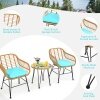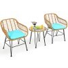 ● Durable Rattan and Sturdy Steel Structure: This patio bistro set are made of premium all-weather rattan which has strong toughness and wear-resistance and is not easily deformed for long lasting use. Besides, supported by a heavy-duty powder coated steel frame of anti-slip foot pads, this conversation set is very stable and robust.