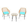 ● 3-Piece Modern Conversation Set: This outdoor wicker furniture set comes with 2 cushioned chairs and a tempered glass top table, which can create a cozy space for you to enjoy leisure times with a cup of coffee or tea. More, combining modern and simple designs, this bistro set is a perfect addition to your patio, porch, balcony, etc.