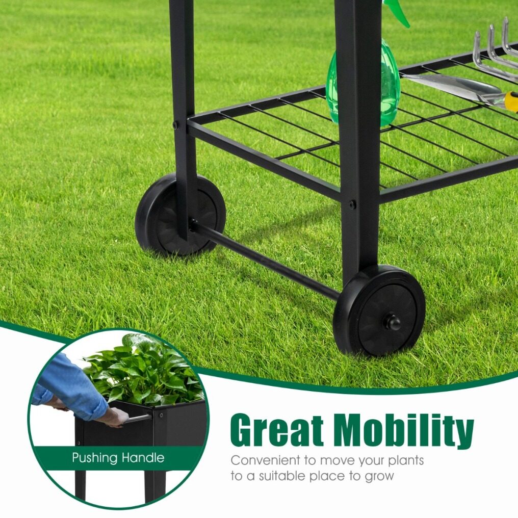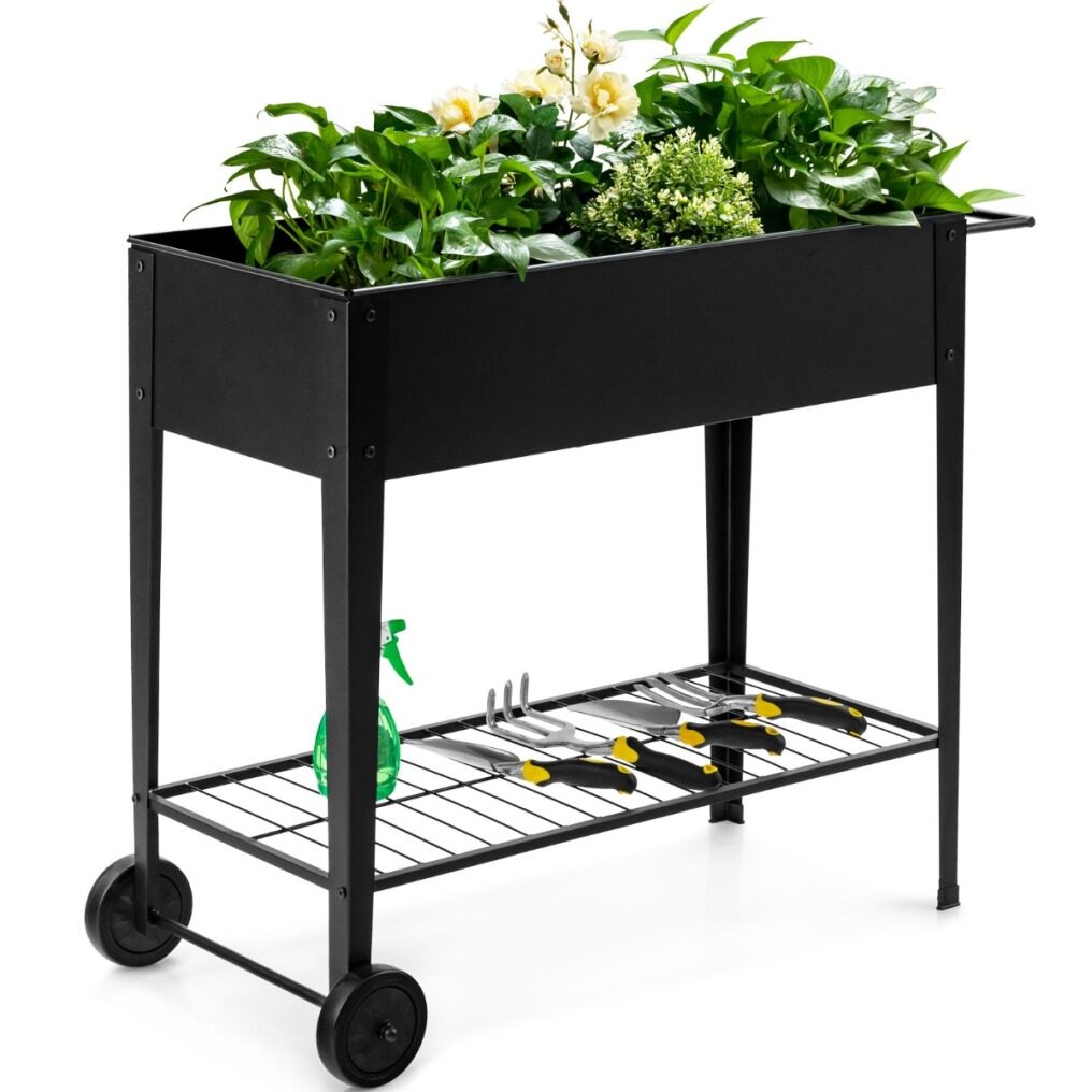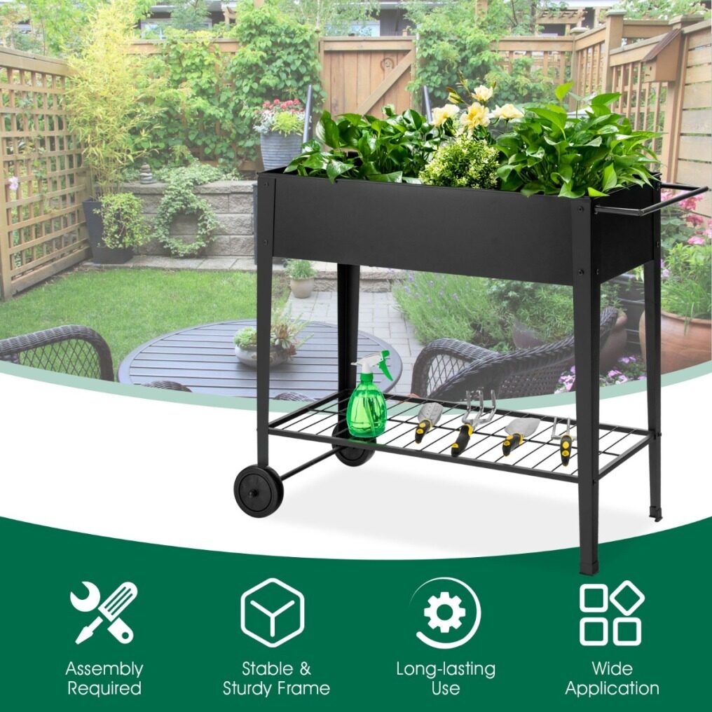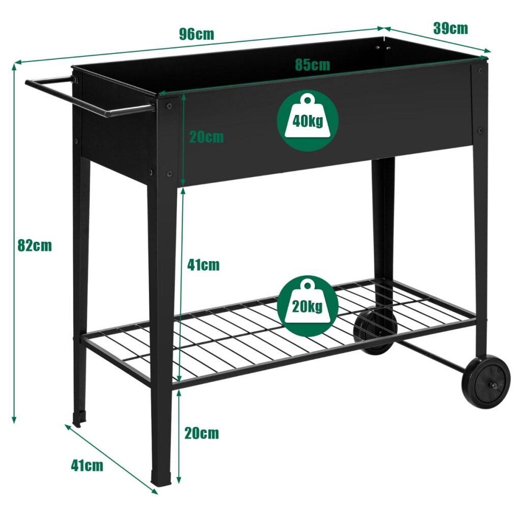 The elevated garden bed will be a good partner to help you build a green world! Large box on the top allows you to raise a variety of plants and flowers, such as vegetables, ferns and other plants. And you can put your tools, shovels, watering pots on the wide bottom shelf. Made of premium metal material, the outdoor garden box can serve you for a long time without breaking. It comes with an ergonomic handle and 2 smooth wheels, which makes it easy to move anywhere. What’s more, the drainage holes are specially designed for better ventilation and avoiding flooding. The portable garden bed with suitable height enables you to garden without having to bend over. It is ideal for indoor and outdoor, including garden, patio, balcony and living room. Start and enjoy your gardening with your family or friends!