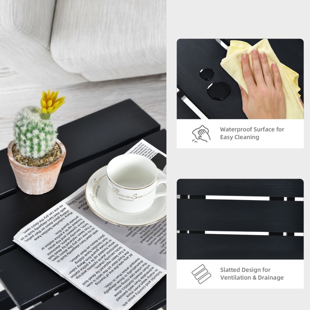 ● Humanized Design: The side table with rounded corners is able to protect you and your family from being scratched accidentally, thereby creating a safe environment for daily use. Moreover, the slats are designed for easy drainage, so you can use this wood coffee table outside with confidence.