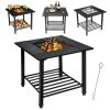 Our square wood burning fire pit with a simple style can match any outdoor living space decoration. Just enjoy your outdoor leisure time with this outdoor fire pit dining table! The sturdy steel frame with powder-coated surface ensures longer service time. In addition, this multifunctional fire pit can be used as a wood burning pit, BBQ grill, ice bucket or dining table. Therefore, you can enjoy the warmth of an inviting fire on a cool summer night or crisp fall evening, or enjoy a nice meal with family and friends on the fire pit table. What's more, the spark screen cover and fire poker make the fire pit safe to use. And the adjustable foot pads maintain overall stability.
