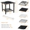 4 in 1 design to meet your different needs Heavy duty steel frame with solid construction can stand the test of time The spark screen cover protects you from sparks, embers and debris The fire poker for safe lifting and controlling the mesh cover Large capacity can support various items with ease The rustproof and heat resistance surface is suitable for outdoor use The adjustable foot pads keep the fire pit stable on the uneven ground The bottom shelf can be used to place wood or other tools Suitable for patio, backyard, poolside, balcony and more Clear instructions and necessary hardware for easy installation