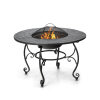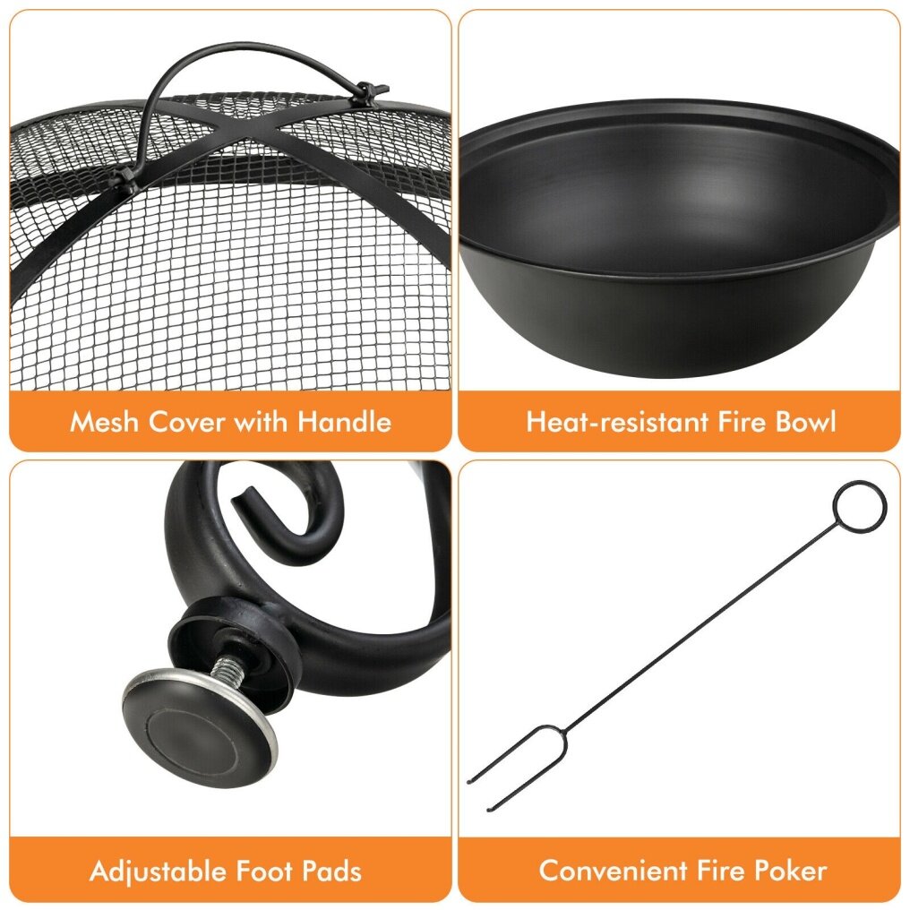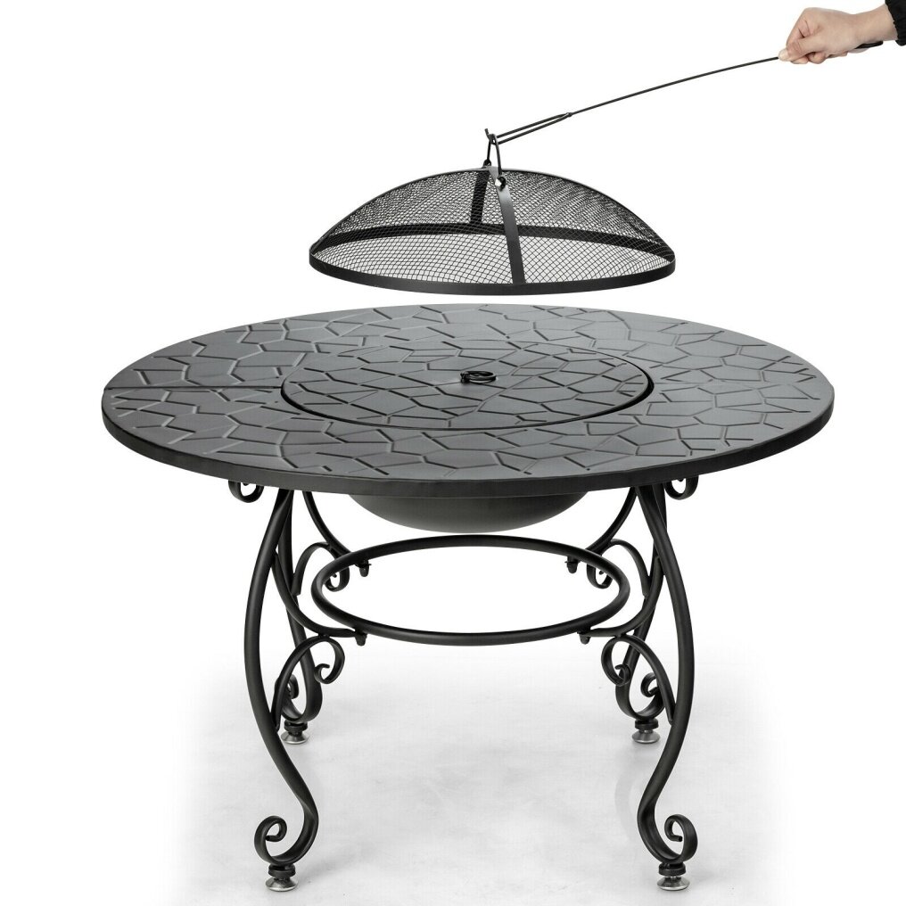 Add warmth to your patio, deck or backyard with this versatile wood burning fire pit table! Thanks to its waterproof and rustproof design, you can use it for long-lasting outdoor use in confidence. The deep fire bowl makes this fire pit ideal for burning bonfires and even roasting marshmallows. Comes with an easy to lift mesh spark cover and poker, this 4 in 1 fire pit table allows you to use it easier and safer, do not hesitate to place an order!