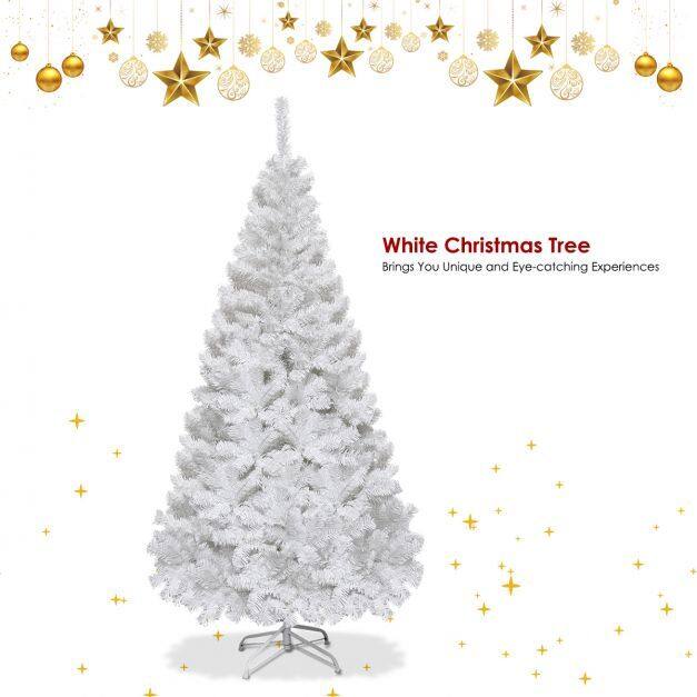 This classic pine unlit Christmas tree comes with a durable metal base that can help stand the tree up straight inside or outside of your home and it will add a warm, festive feeling to any setting.