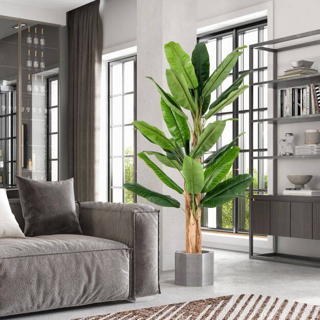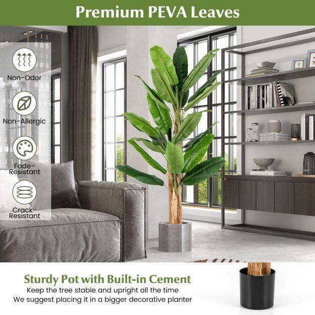 Sturdy and Stable Structure: The faux banana tree is supported by a sturdy pot with built-in cement and a thick trunk, keeping the tree stable and upright all the time. Additionally, we suggest placing it in a bigger decorative planter to match your existing decors.