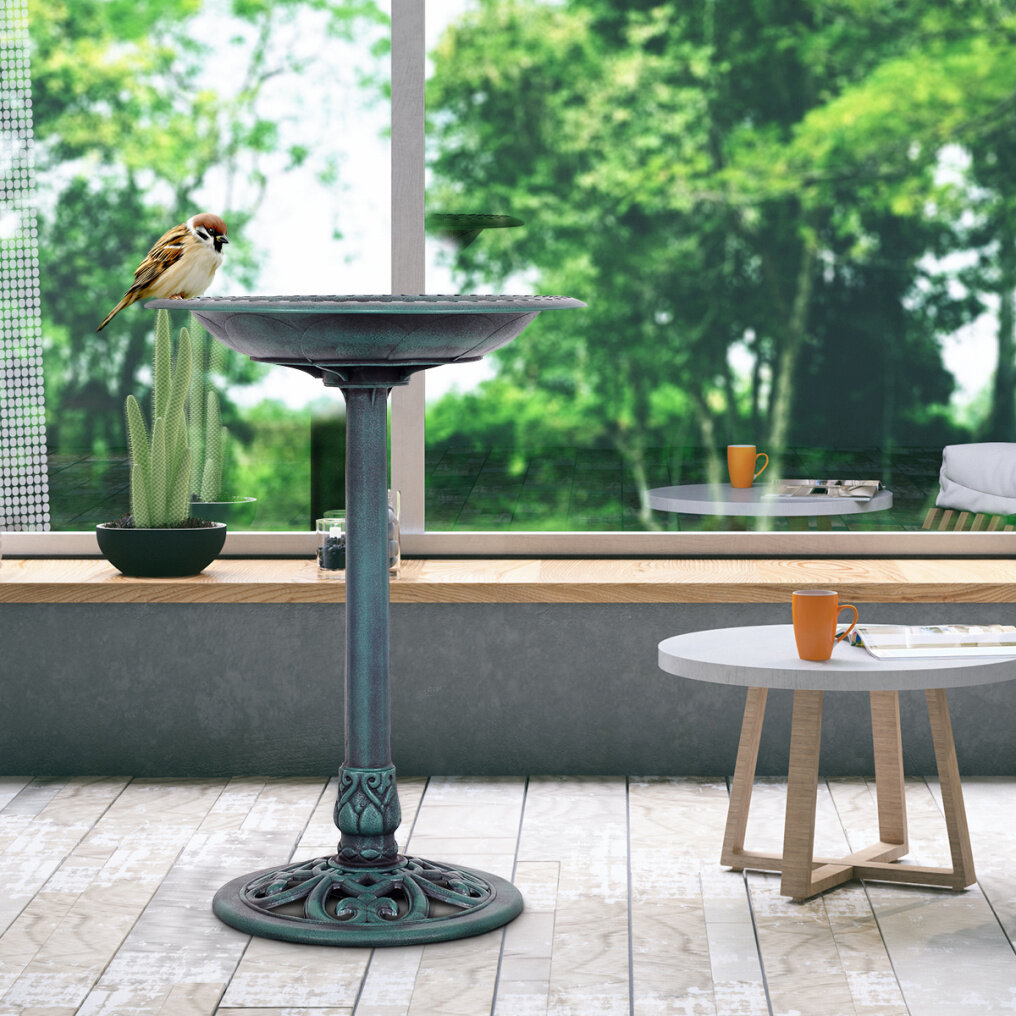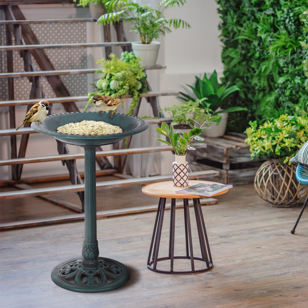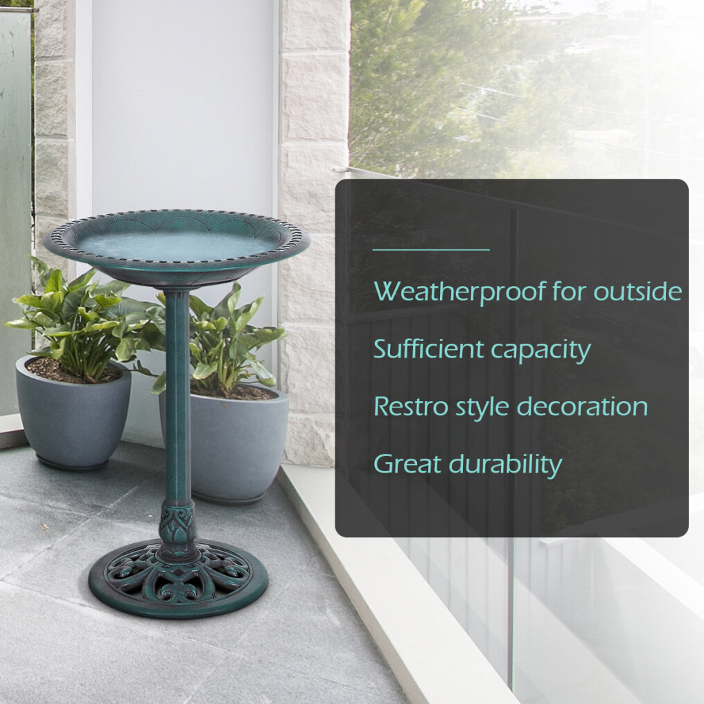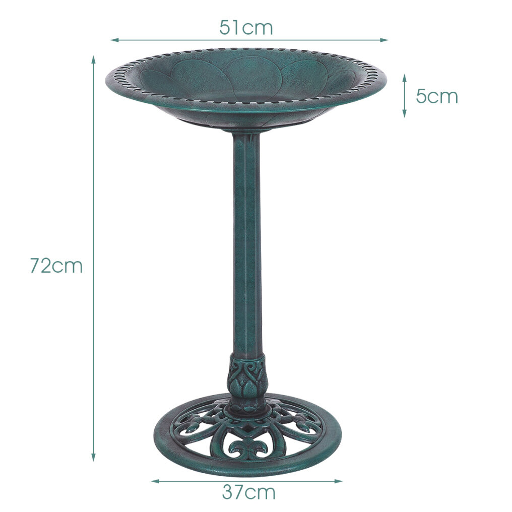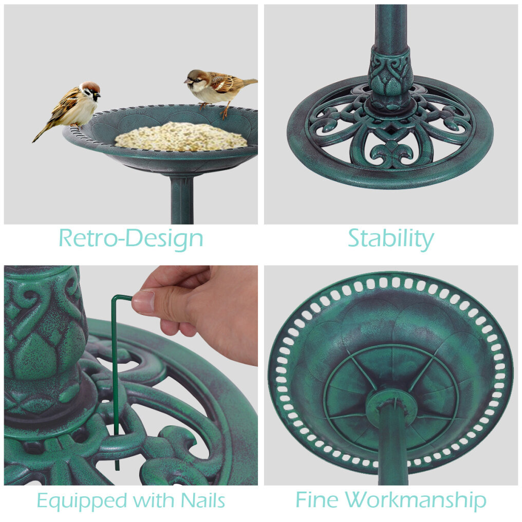 Exquisite Decor Outdoor: Featuring a vivid bird ornament and retro patterns, the birdbath stands out with its exquisite and antique look, which is a perfect decoration for your garden, terrace, lawn, etc. Simple in structure, the birdbath is assembled together in minutes without extra tools. Lightweight and compact, you can easily move it from one place to another.
