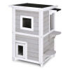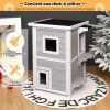 ● Luxury 2 Story Wooden Cat Condo: This wooden cat house features 2 tiers, which is enough for 1-2 cats to rest and play. And the lower condo is also a sweet home for puppies, bunnies, and more. Made of strong firwood and solid plywood, this cat shelter is stable and can be used for a long time.