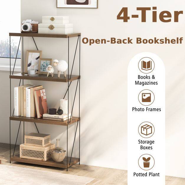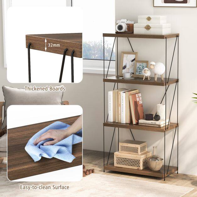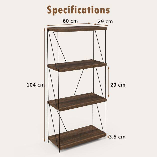 Revolutionize your decoration and organization with this expertly crafted, space-saving bookshelf! Why choose us? Fuse elegance with functionality as you transform clutter into art - presenting books and trinkets against a backdrop of industrial chic that complements any room. Worried about assembly headaches? Cast those fears aside! You’re minutes away from completing this simple setup and embracing a life of orderly bliss. Ditch the dread of wobbly furniture; our exclusive design with non-slip pads delivers peace of mind so your treasures never teeter. Act now - elevate your space and showcase your style with a versatile 4-tier display rack!