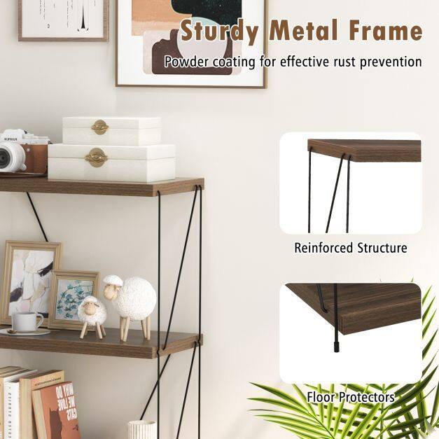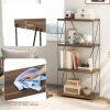 Sleek Industrial Aesthetic: Elevate your room with industrial bookcase, seamlessly blending with any interior theme. The clean lines and wood grain finish invite a retro style to your environment, making this the ideal showcase for your books, crafts, photos, or plants.