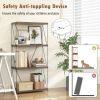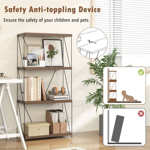 Stable Construction: Fear not for the security of your possessions. With the addition of non-slip foot pads, the versatile bookshelf remains unwavering on uneven floors. The 4-tier bookcase is equipped with thoughtful anti-tipping kits to ensure your items stay in place for added safety.