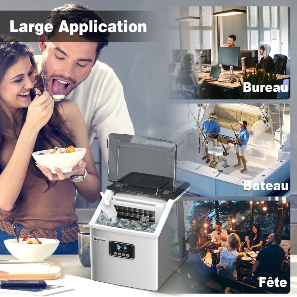 Compact design and versatile applications : The compact ice maker takes up little space on the countertop while offering you practical functions. Whether for business use, from cafes to bars and restaurants, to private use in the home kitchen and at parties, the portable and powerful ice maker will perfectly meet your needs.