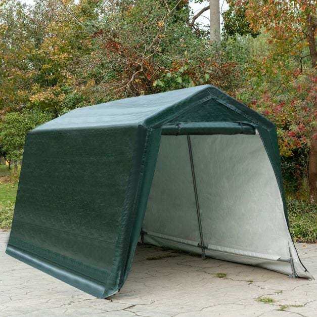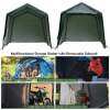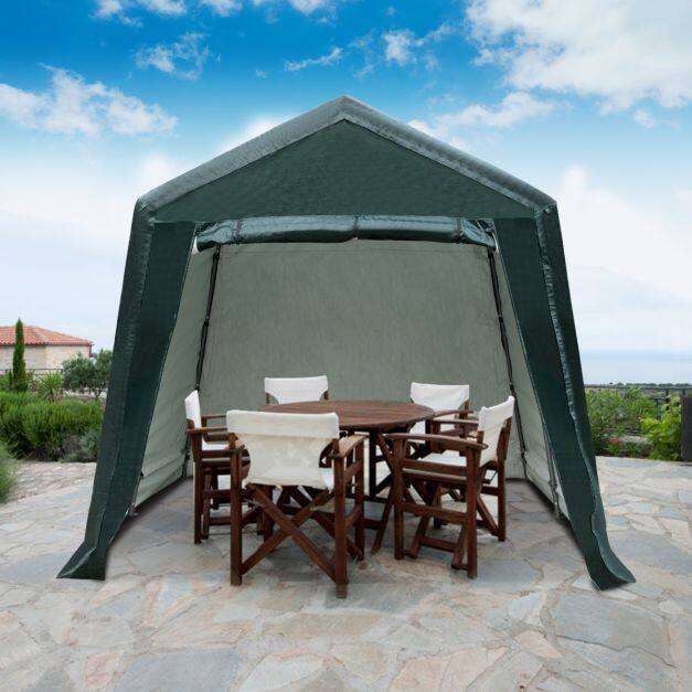 Made of heavy-duty steel, the frame of storage shelter is sturdy for durable use. And the poles of frame are bonded with a premium powder-coated finish which prevents chipping, peeling, rust, and corrosion. In addition, the whole canopy is connected with strong and thicker accessories so that the frame is stable after setting up. With premium PE cover, the shelter is sure to provide protection against rain, snow and sunshine for your items such as tools, firewood and small vehicles. The door with double zippers is for convenient access and it also can be removed. Most of the poles are connected with buckles for easy installation. You don’t have to spend too much time to assemble the canopy if you set it up with other people.