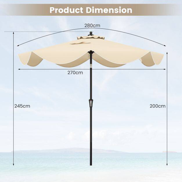 2.8M Patio Umbrella 2-Tier Market Table Umbrella with Crank Handle-Beige