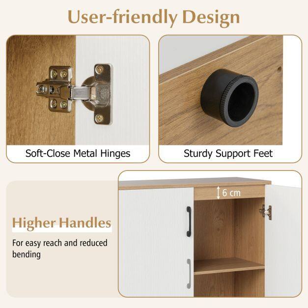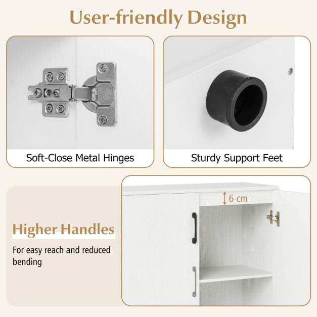 Ease of Use at Your Fingertips: Designed with your comfort in mind, the higher handle position allows for easy reach and reduced bending. And with soft-close metal hinges, the shoe cabinet doors close quietly and smoothly.