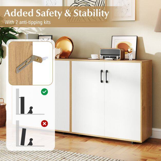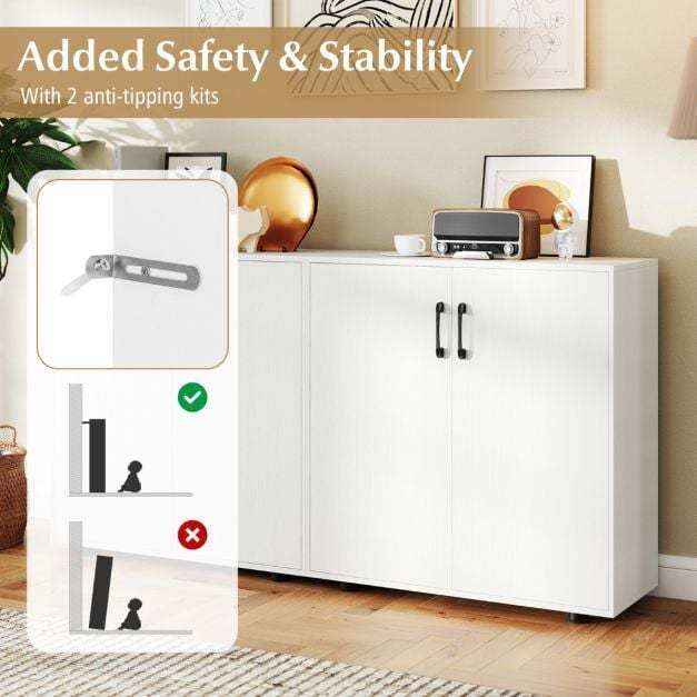 Added Stability: No wobbling or tipping here! The accent cabinet comes equipped with 4 sturdy support feet and 2 anti-tipping kits, ensuring excellent stability to protect your belongings and family members.