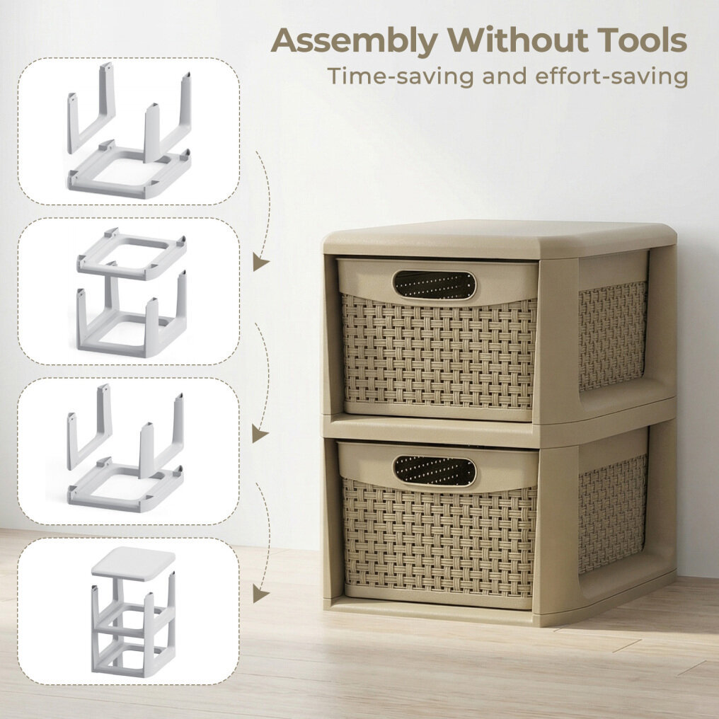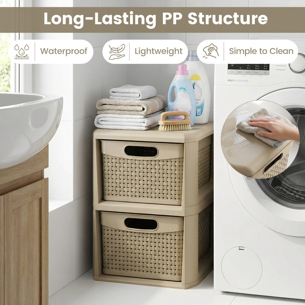 ● Wicker Style Drawers: Each drawer of the cabinet tower boasts convenient handles on both the front and back, allowing 2-way pulling. The drawers are also decorated with stylish wicker patterns that improve airflow while adding a decorative touch.