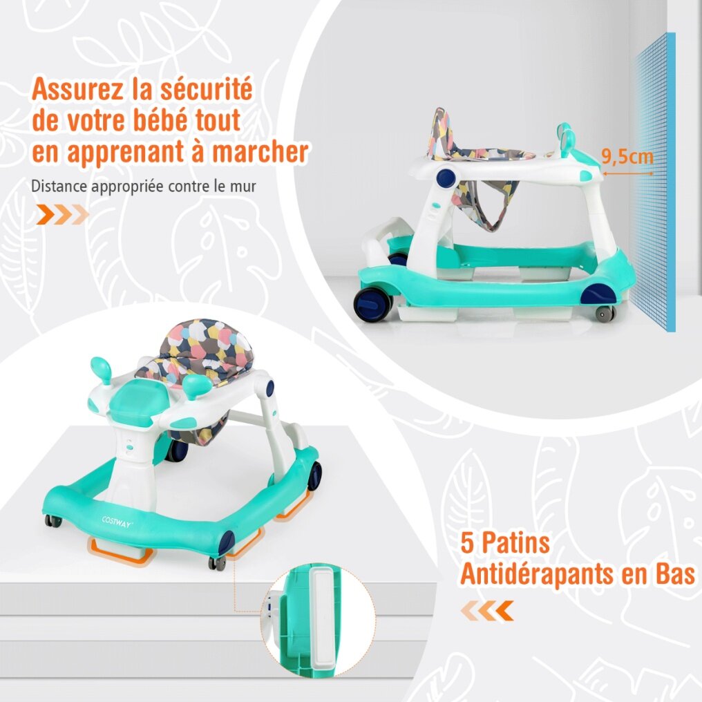 High security & comfort : This baby walker has a headrest that supports the child's head and neck. The 5 non-slip steps and non-slip wheels also contribute to safety. The washable and breathable cover guarantees a high level of comfort.