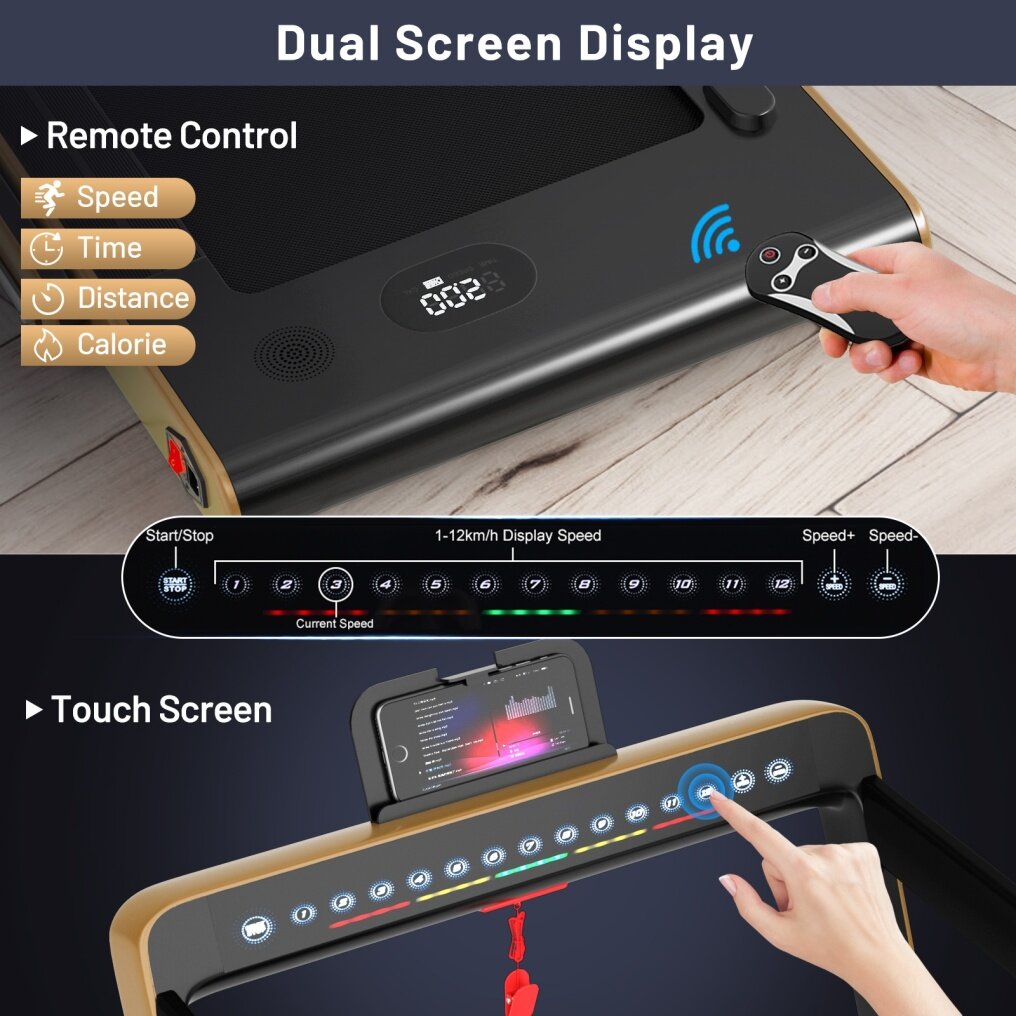 ● Innovative 2-in-1 Folding Design: It has 2 modes that can be used, for walking and jogging. When the handrail is folded, it can be used as an under-desk treadmill at a speed of 1-4 km/h. Unfold the handrail with its 1-12 km/h speed to enjoy running and reach the fitness goal.