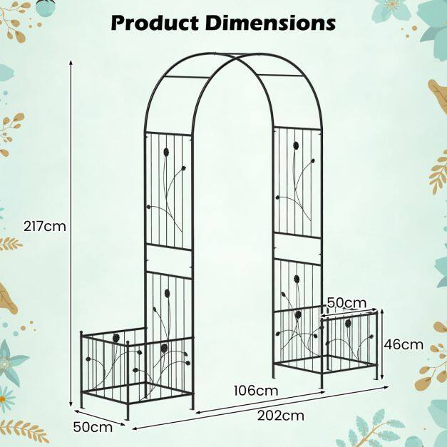 ● 2 in 1 Multifunctional Design: This arbor trellis is designed with a middle garden arch for people to cross through, and it is suitable for climbing vines or other decorations. Besides, 2 side planters with open-ended designs, make it suitable for planting flowers or vegetables.