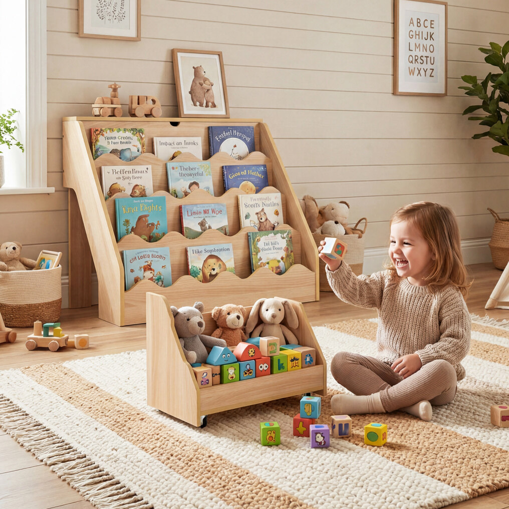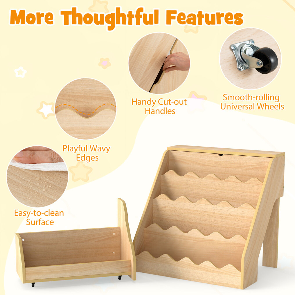 • Trusted Safety Features: Every detail of this toddler bookshelf is designed with your child's safety in mind. The 2 sturdy anti-toppling devices allows it to stand stable even in active playrooms, while the smooth rounded corners encourage worry-free exploration for curious kids.