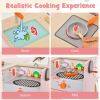 Realistic Kitchen Experience: This wooden play kitchen offers kids realistic facilities to pretend wash, cook, BBQ and bake, letting them enjoy immersive kitchen experience. Besides, the package contains abundant cooking accessories(kitchen utensils, food toy x 6, pan, plate, spice bottles) for fun.