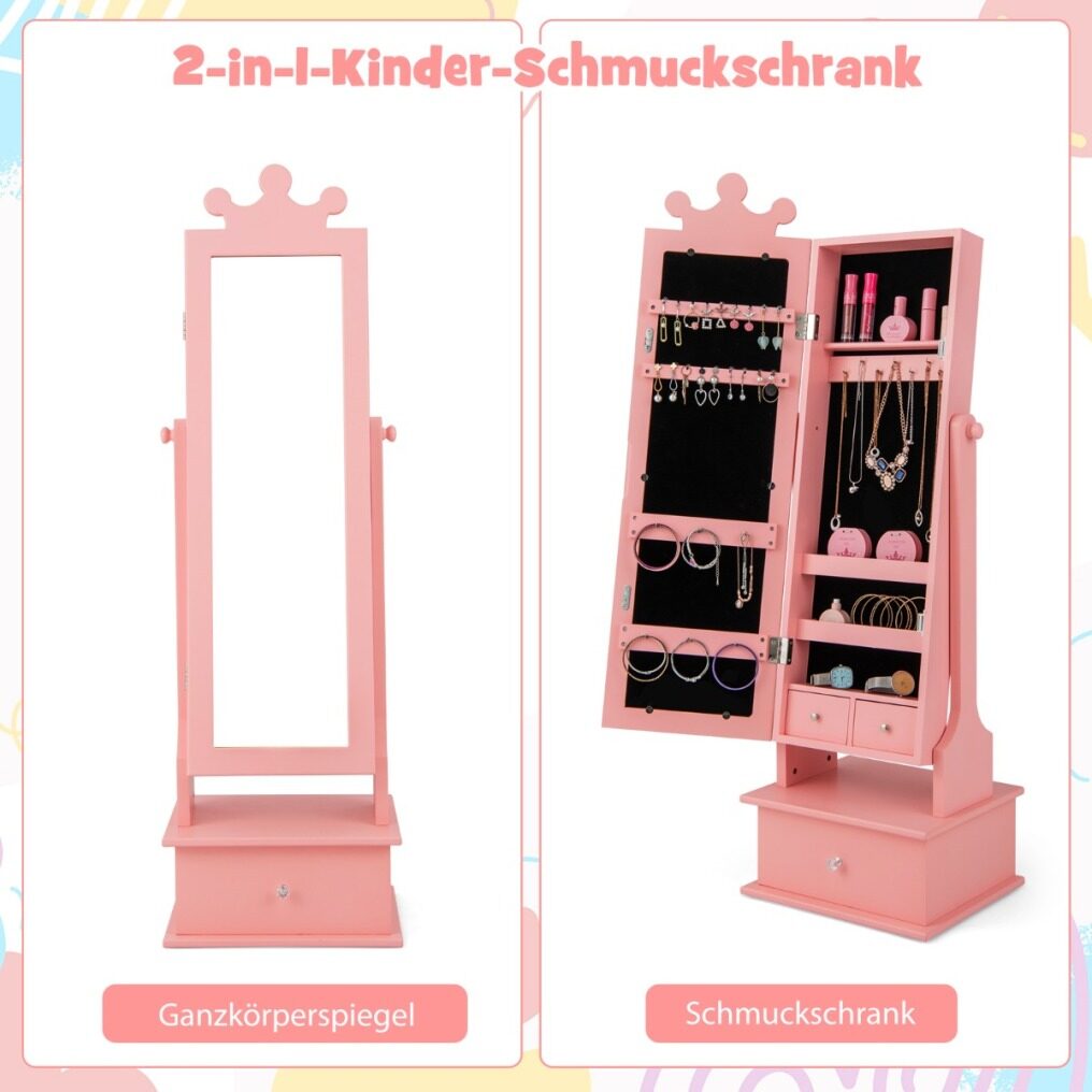 ● Great Gift for Little Princess: This standing jewelry cabinet is a perfect addition to girls' rooms. The charming appearance with a cute crown top attracts little princesses' attention. Thus, it is a great birthday or holiday gift for kids above 3 years old.
