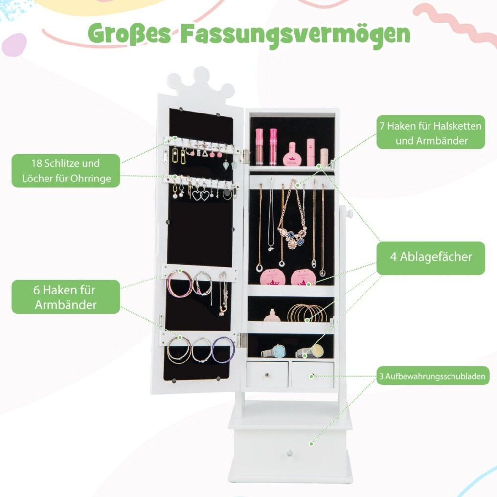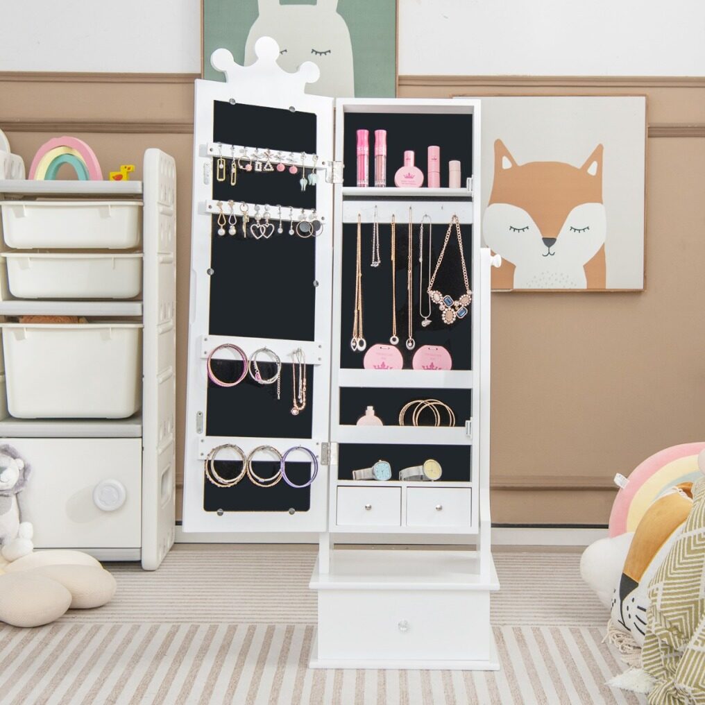 ● Great Gift for Little Princess: This standing jewelry cabinet is a perfect addition to girls' rooms. The charming appearance with a cute crown top attracts little princesses' attention. Thus, it is a great birthday or holiday gift for kids above 3 years old.