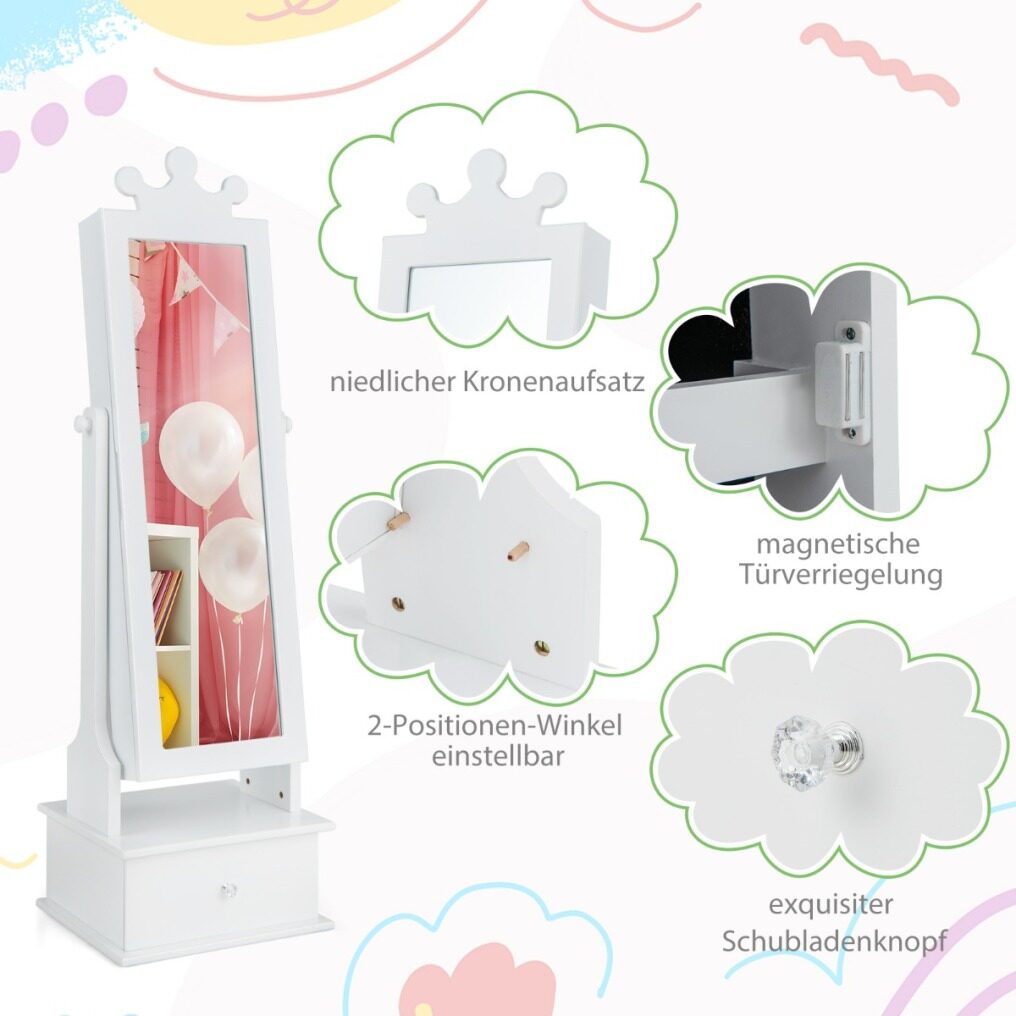 ● Child-friendly Design: The equipped anti-toppling device attaches this standing jewelry organizer to the wall firmly, avoiding accidental falling. With ASTM and CPSIA certifications, the kids jewelry armoire is safe and reliable for toddlers.