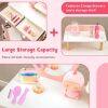 2-in-1 Design and Acrylic Mirror: The vanity table is equipped with a large mirror with a cute rabbit frame, which offers a clear view for your child to dress up. Unlike ordinary mirrors, this mirror is made of acrylic material, which is non-breakable and safer to use. In addition to being used as a makeup table, it can also serve as a writing desk when needed.