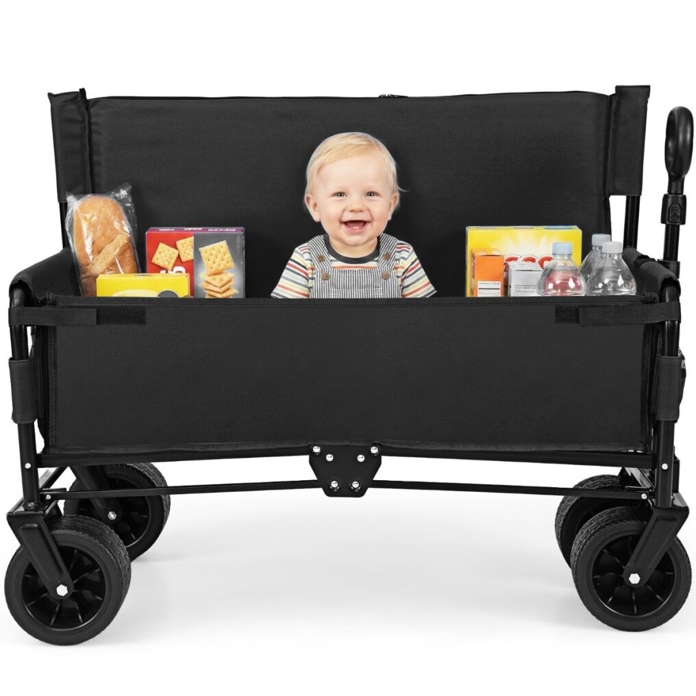 Convertible Comfort & Portability: The foldable beach wagon converts into a bench, providing comfort with back and seat cushions featuring high-resilience sponge filling. With a foldable and portable design, it is perfect for beach trips, camping, picnics, and more outdoor events.