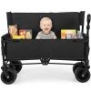Easy Setup & Thoughtful Details: Ready for immediate use without assembly required, the folding wagon with bench includes side pockets for easy storage of your essentials. The hook and loop fasteners ensure secure attachment, while the reinforced base adds to overall steadiness.
